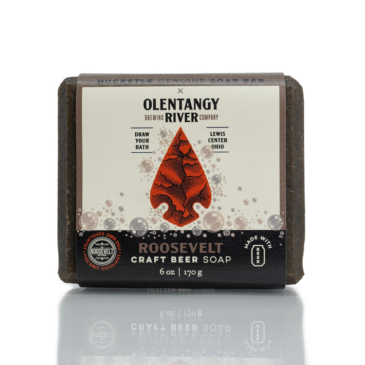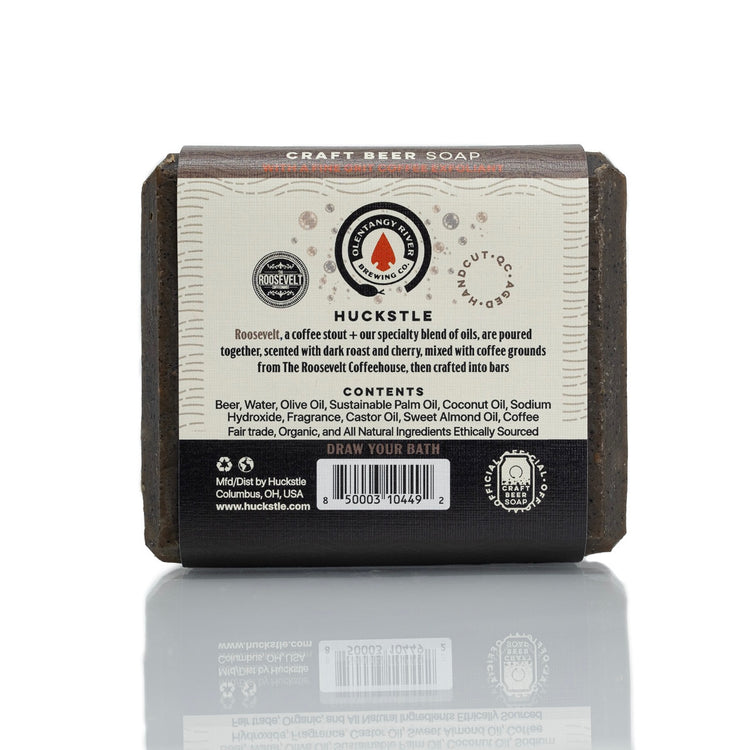 Premium Cold Process Craft Beer Soap Bar made with Roosevelt by Olentangy River Brewing Co. featuring a fine grit coffee exfoliant from The Roosevelt Coffeehouse coffee grounds.